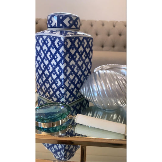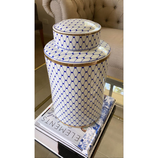 Hamptons Glam Blue/White/Gold Ceramic Ginger Jar